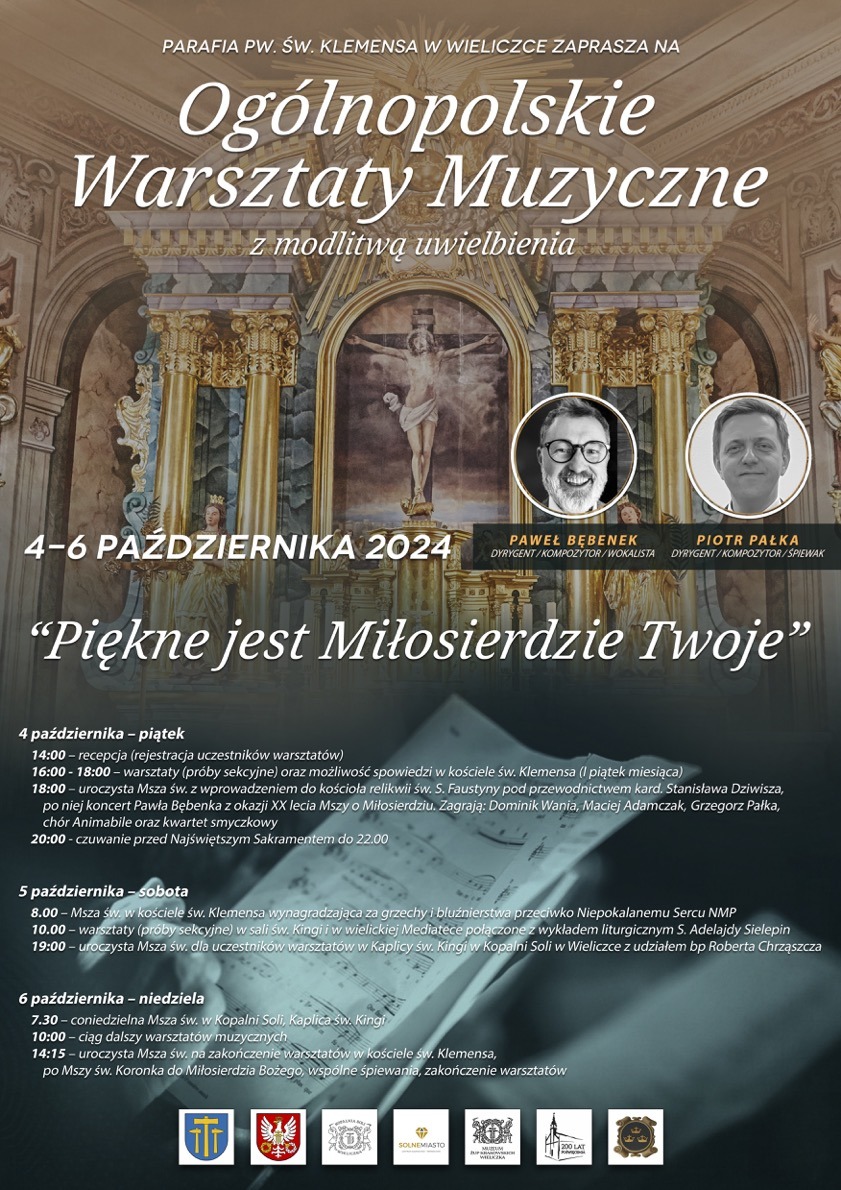 19:00 – uroczysta Msza św. dla uczestników warsztatów w Kaplicy św. Kingi w Kopalni Soli w Wieliczce z udziałem bp Roberta Chrząszcza
