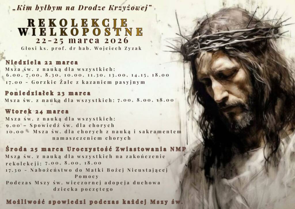 18.00 – Msza św. z nauką dla wszystkich na zakończenie rekolekcji